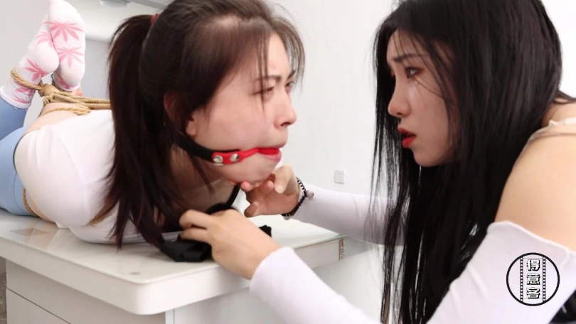 【视频时长】:00:43:33 【文件大小】:2792MB 应聘陷阱完结篇,因此请来了两位颜值加实力并存的诗涵(吴晗)和星宇,希望大家喜欢,作为完结篇精彩奉献。剧情介绍,妹妹被绑架折磨,还是忍不住出卖了姐姐,一个电话把姐姐骗来。半个小时后,姐姐来了,发现门没关就直接进来,走到客厅发现在桌子上被直臂缚驷马倒攒蹄的妹妹后大吃一惊,回过神来马上跑过去想帮妹妹解开绳子,她先解开妹妹的蒙眼布,然后想方设法解开妹妹的绳子,沉浸在解绳子中的她忘记了身后出现的坏人,妹妹惊恐地发出呜呜呜的声音提醒,她却不理解,然后就被歹徒在背后抓住了,然后用刀威胁,接着就是五花大绑上半身,绑上股绳,捆好大腿根,膝盖,小腿,脚腕,捆绑完毕后当然还是少不了堵嘴的,一双白袜子,一条黑布把她嘴巴堵得严严实实。之后坏人将姐姐扔在沙发上,然后解开妹妹驷马,把她押解到柱子边让他从跪下,让她跪着绑在柱子上,再把嘴巴,眼睛都绑上绳子和柱子绑一起让她动惮不得,之后在姐姐身上搜出了银行卡和手机,然后让姐姐躺沙发上后离开。坏人离开后,姐姐爬到妹妹身边,含糊不清说道。你帮我解嘴巴,我帮你解绳子。之后妹妹帮她解开嘴上的封堵物,姐姐用牙解妹妹绳子。就在快成功时,坏人回来了。一气之下,用丝袜堵姐姐嘴,再贴上厚胶布,接着用绷带绑上。然后肯定是放倒在地上驷马倒攒蹄并强制抬头。之后坏人拿刀问妹妹这是谁的主意,妹妹又把姐姐卖啦,说都是姐姐的主意。这下有姐姐好受的了,帆布鞋绑姐姐脸上让她好好闻一闻,接着挠脚心,踹她。一会就把坏人累得不行,决定去休息。最后两姐妹被坏人并排驷马倒攒蹄强制抬头并排放置在一起,让她们继续挣扎。 ![]() ![]() ![]() ![]() ![]() ![]() ![]() ![]() ![]() ![]() ![]() ![]()