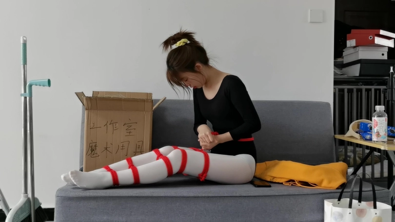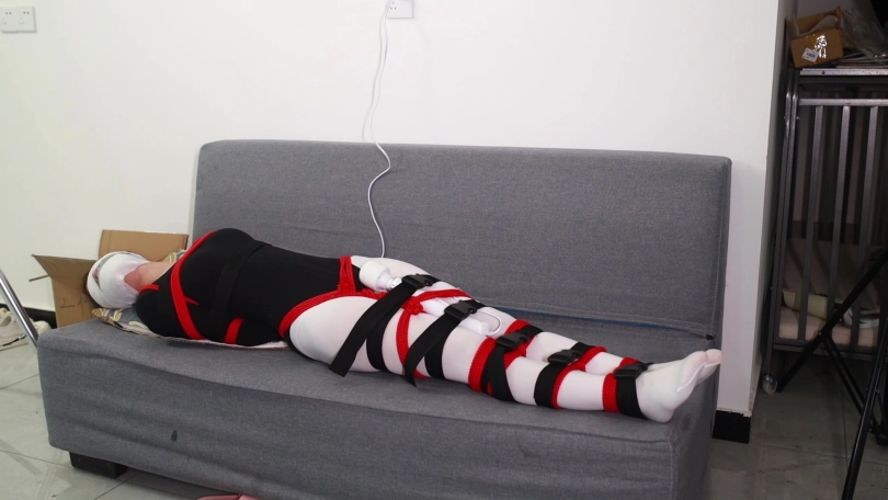 【视频时长】:00:41:35 【文件大小】:1544MB 文文是一个芭蕾舞团的女成员,今天练习过后,她穿着一身运动型的打扮回家。她刚回到家后在门口收到一个不知名的包裹,上面写着「工作室魔术用具」,她把包裹放在沙发上。 她坐下后先脱去鞋子,然后长袜、瑜珈裤和卫衣。脱去这些后,她的身上只剩下今天练习的长袖黑色练功服和白色的厚裤袜,然后穿上拖鞋后把脱下的衣服放回房间。 出来后,她发觉包裹神奇的自己打开了,文文去看看里面到底有些什么。包裹里有大量的红色棉绳、一卷银色的封箱胶纸、几卷白色绷带、一双肉色丝袜。和多条的皮带。 文文放在沙发上的电话突然传来了讯息,原来是男朋友的,文文坐下来开心的跟男朋友互传讯息。 也许文文太专注没有为意,一条红棉绳突然在她的脚裸处绑了一个8圈的「8字结」。 文文向下望,她发现了她无故被这个怪异的「8字结」套在脚裸上,虽然不知为何,但她还是解了下来。 解下后不久后,她的脚裸又被8圈的「8字结」重新绑住了,今次连小腿和膝盖下半也分别被8圈的「8字结」,棉绳好像有生命似的。 现在文文腿上总共3处绑住了,但她今次无论如何也解不开。 文文不放弃挣脱捆绑,但又过了一会,她的大腿和膝盖上半也绑了棉绳,她的双腿无论怎样挣扎也再分不开。 还是穿着拖鞋的她用力的站起来尝试跳到桌子上拿剪刀。当她跳到一半时,一条棉绳已在她的腰间出现,跟穿过她的胯部紧紧的勒着,股绳之间更有几粒绳结。 此时文文只能忍受着股绳间的刺激跳到台边,正当她想拿起剪刀的时候,她的双手突然被白色的绷带包裹成两个拳头,使她不能拿起剪刀。 这时,她仍然不知道发生什么事,她选择忍受着股绳的刺激跳回沙发,当然每一步也很辛苦。 她意图用她被包裹着的双拳按电话给男朋友求救,正当她差点儿成功的时候,她的双臂被不知名的力量往后拉,手腕已被8圈的「8字结」绑紧了。 她继续挣扎,尝试尽力的用拳头拨打电话,可是这时候又有8圈的「8字结」把她的手肘拉紧,使她的双臂强行伸直了,手腕处的绳结更与股绳绑在一起。 她愈是挣扎,她身上的棉绳也越来越多,一条长长的棉绳经她的上下胸及膊胳绑在一起,此时mm的整个上身已经不能动了。 正当文文想大叫救命的时候,包裹来的肉色丝袜裤走进了她的口腔,把她整个口腔完全地塞满了。 文文继续挣扎,口中不停发出「呜呜」声,全身也不停地起伏着。 文文尝试把口中的丝袜吐出,但随之而来,银色的胶带贴满了她的整个面部与下巴。这还没有停下来,一整卷的白色绷带更把文文的面部包起来,她连最后求救的方法也失去了。 最令她想不到的是一条ZDB被她双腿夹着紧紧的顶住裆部,ZDB也被不知名的力量开动了,使文文全身更为软坦。 文文极力地忍受着防止GC的来临,但是白色的绷带把文文整个头部除了鼻子以外的地方重重的包起来变成一片白色,仿佛就像一个木乃伊。 此时被剥夺了五官及四肢被束缚了的文文终于忍不住GC,口中也不停地发出「停止」的讯号,但是ZDB有没有停止。 文文已经不知经历过了多少次的GC,这时她的男朋友终于回来了,看见了自己的女朋友被不知名的捆绑着,连忙过去帮她解困。 ![]() ![]() ![]() ![]() ![]() ![]() ![]() ![]() ![]() ![]() ![]() ![]() ![]() ![]() ![]() ![]() ![]() ![]() ![]() ![]() ![]() ![]() ![]() ![]() ![]()