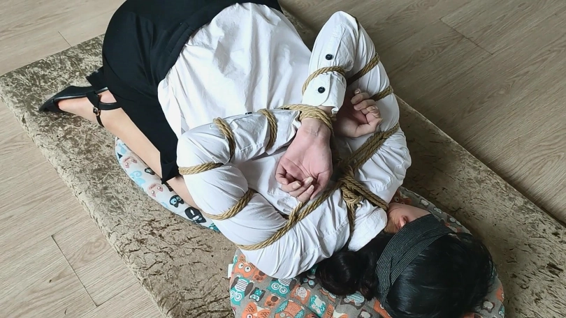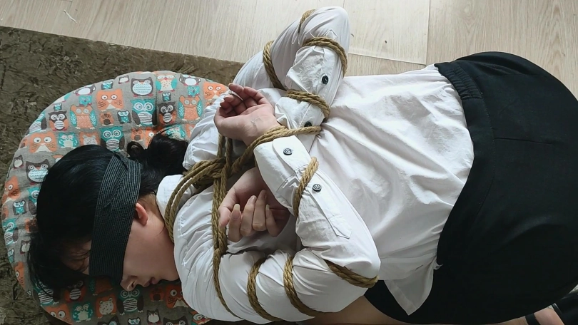 的柔韧性很棒的女孩,五花大绑起来还是很漂亮的,胳膊可以反扭的很高