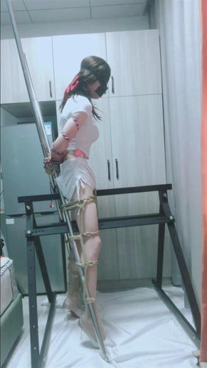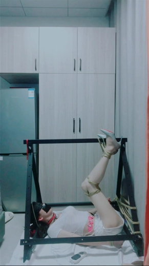 家里闲置了两根长棍子,本来想X型缚的,结果捆好腿之后腿部都失去了活动的能力,所以导致双手很不灵活,加上很久没有玩三角架了,忍耐力下降,捆绑好之后只能脚尖顶地,所以只能简单的束缚一下双手,加紧练习一下下次试试能不能捆好,两种姿势都是比较难受的,捆绑过程也挺消耗体力,加上电击片都在无时不刻的折磨着自己,拍好之后没有多余的体力拍摄其他方式的束缚了。