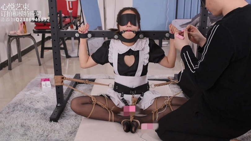 小女仆婉婉因为打碎了主人最心爱的花瓶,被主人惩罚禁锢在铁甲上面,全身都被绳索和铁铐禁锢没有一丝挣扎余地。腰上使用固定[X_X]的皮带式股绳,使用[X_X],震动乳夹虐辱,震动牙刷TK。先后数次到达gc。却因为戴着口球无法叫喊只能无助的呻吟。
