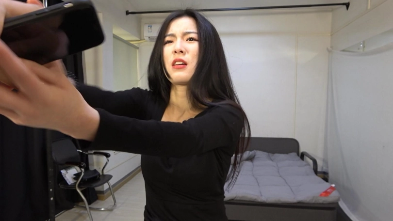 小美还想继续抢夺手机,但突然觉得头晕目眩,于是双手摸着太阳穴,脸上显示出不舒服的表情,马上又开始脚步凌乱,没过多久就倒在了沙发上睡着了。