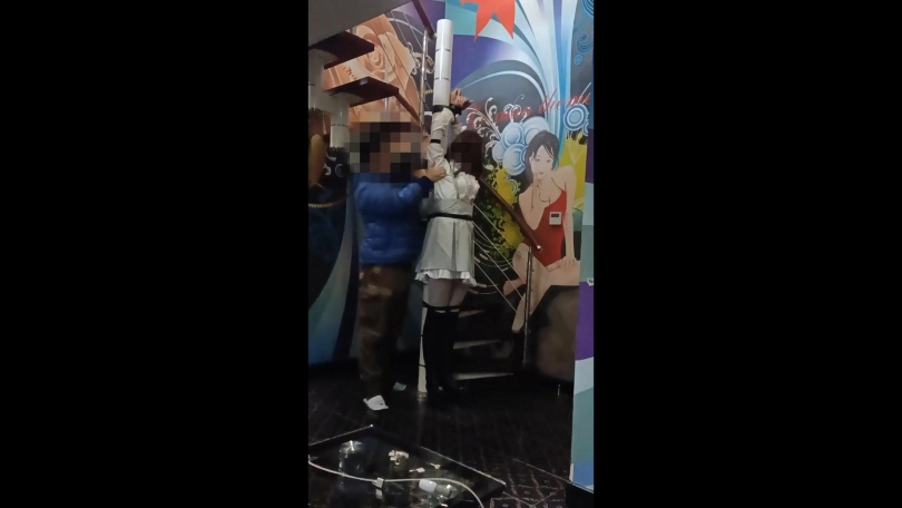有件比较意外的事是一根皮带被伪娘挣扎时绷断了,视频里可以看到……