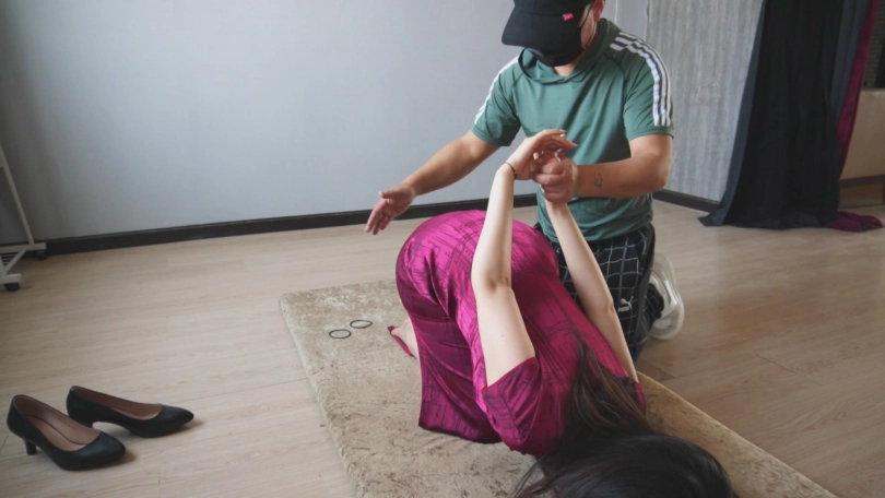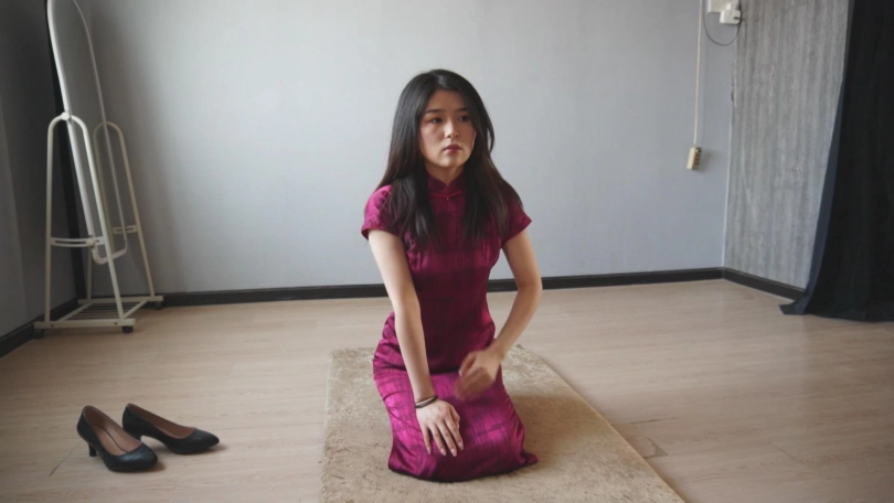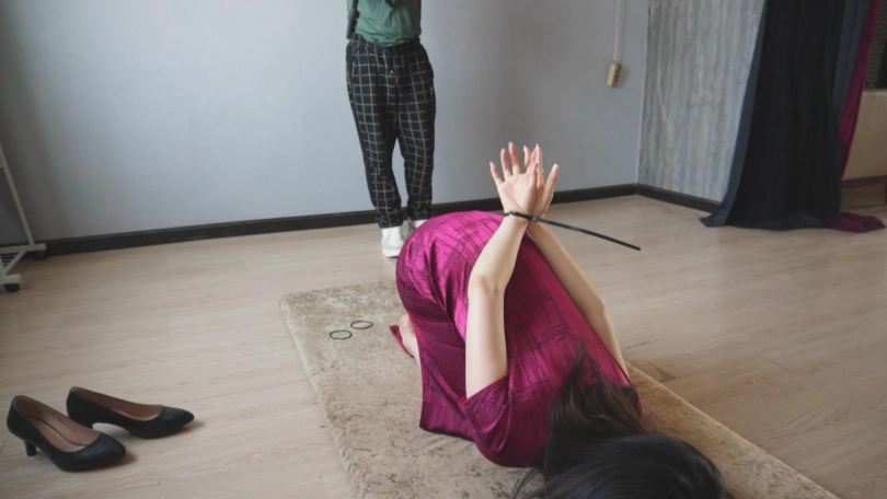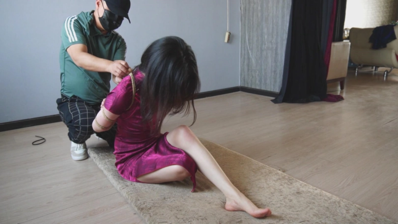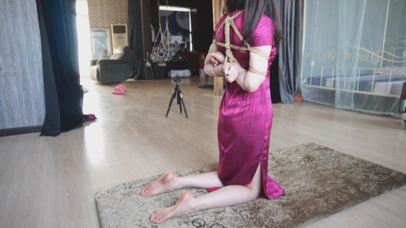 一袭红色旗袍,衬托出古典气质美。绳子捆在身上,将身材凸显的淋漓尽致。