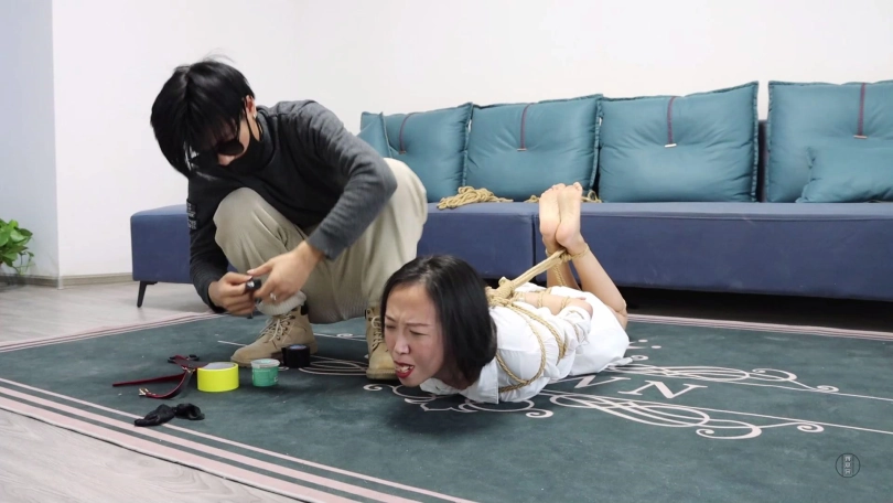 【视频时长】:00:21:39 【文件大小】:1603MB 文清在家遭遇拿枪劫匪劫持,劫匪将文清手脚简单捆绑后把一双黑色短丝袜塞入她口中,而后去文清家屋里翻找财物。 文清坐在地上拼命挣扎,经过一番努力终于挣脱手腕捆绳,迅速给脚踝处捆绳解开,打算拽出嘴里黑色短丝袜呼救,没想到劫匪从屋里出来正好目睹这一幕。 劫匪将文清上身五花大绑,双腿脚踝重新并拢捆绑好,并在此基础上捆成驷马姿势放置在沙发前地上。 为了惩罚文清之前想跑,劫匪扒掉文清脚上穿的一双肉色短丝袜,拽出文清口中黑色短丝袜丢掉后捏住文清鼻子强行把这两只原味肉色短丝袜塞到文清口中,并拿黑色宽胶布剪下5张封在文清嘴外,用黄色胶带缠绕多圈,最后用肤色弹力自粘绷带缠绕多圈封严实。 劫匪故意拿手机给文清拍照,还拿给她看进行羞辱,愤怒的文清瞪向劫匪呜呜呜直叫,劫匪一看文清还敢瞪他,气的用眼罩将其蒙眼,而后带着抢来的财物离开。 文清扭动身体在地上来回呜呜呜闷哼挣扎,可这次不管怎么挣扎绳索纹丝未动,始终无济于事,最终精疲力尽的她减小挣扎幅度,低下头躺平等待家人回来解放她。 ![]() ![]() ![]() ![]() ![]() ![]() ![]() ![]() ![]() ![]() ![]() ![]() ![]() ![]() ![]() ![]() ![]() ![]() ![]() ![]() ![]() ![]() ![]() ![]() ![]() ![]() ![]() ![]() ![]() ![]() ![]() ![]() ![]() ![]() ![]()