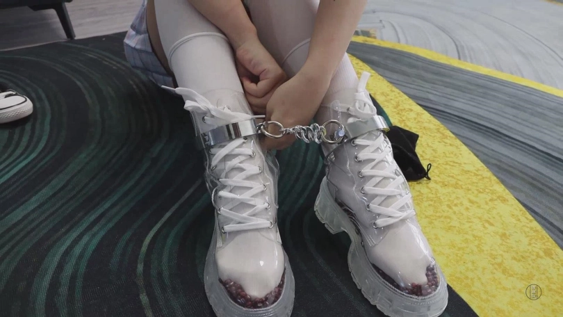 【视频时长】:00:38:06 【文件大小】:1902MB 模特:清清(可爱又少女感十足的妹纸) 看点:双马尾+天蓝色JK制服短裙+过膝长筒丝袜(绝对领域福利)+白色中筒丝袜套冰冰袜(上次谁说的丝套棉来着?)+失禁的可爱猫爪内裤堵嘴(当然不是真失禁,堵嘴自拍很可爱)+自缚后蹦跳取物(增加了不少难度,尽情折磨就是了)+自我奴役游戏(详情看下文)+透明马丁靴红豆虐足(铺满了鞋底)+清JK定妆照(感觉跟娜娜有的一拼) 还是我目前最喜欢的模特清清,清的少女感我一直觉得配合JK会展现出不俗的效果,所以这次便实践了,当我拿到定妆照的那一刻,我便断定她绝对是适合JK的不二人选,清十分喜欢在拍摄过程中摆出一些俏皮的小表情,而软糯的配音也是让人欲罢不能,总之,非常勾人欲望就是了。 这次的堵嘴用的几乎全是原味,都是当场脱下来直接堵嘴的,频繁的堵嘴都把清弄生气了(在此致歉)不过幸好清顶住了我这个超级繁琐的剧本狂魔的折磨,拍出了这部好作品。 这次着重提一下得意客老哥,非常的辛苦,这一次的拍摄刷新了我至今为止在得意客拍摄的时长记录,同时剧本之复杂和繁琐也超出往常,但得意客老哥非常耐心的沟通,让这部片子能够以最好的姿态呈现在我们面前,他功不可没,在此我十分感谢他。 继上一部作品承蒙大家厚爱,我也是能满血回归了,新的剧本筹划中,我会以严格的要求让自己的剧本更加精彩,也希望各位能够看得舒服,这一次因为超时成本颇高,所以售价也是略提一些,望诸位谅解。 进入正题:此次的主角是在读高三学生小清,小清在学校里是一位品学兼优的学生,老师与父母都对她予以厚望,小清也靠着自己的勤奋与努力不断的回应着这些期望。 然而,沉重的期望对于她来说像一副重担,时刻都无法放松身心,这样下去迟早会身心俱疲最终累垮,还好,我们的小清拥有自己独特的解压方式,那便是——自我奴役。 这天,小清正在家里做功课,但这不仅仅是一次学习的过程,更是一次惩罚的前置挑战。小清将旁边的橙汁一饮而尽,而这样的饮料在三小时前她已经喝过大半瓶,不断摩擦的双腿正在剥夺她的注意力,不错,她正在用憋尿的方式来挑战自己的极限。 她为自己定下规矩,倘若这套复习题不能做完的话,自己便不能去厕所。结局可想而知,她终究还是败给了这套由她自己选择的超难复习题资料上,失禁的液体将地板打湿,同样浸湿的还有她可爱的猫爪内裤。 作为将地板弄脏的惩罚,她缓缓脱掉被浸湿的内裤,然后缓缓塞入口中,品尝着饱含着失禁液体的内裤,这便是她在接下来游戏中将要承受的惩罚。自然,为了让自己不再犯同样的错误(或许也只是喜欢这份被自己羞辱的快意)小清用自拍的方式将嘴里塞着失禁内裤的样子记录在手机相册,这样一来,她羞人的样子便得以保存。 在正式开始自我奴役游戏之前,需要先准备好道具才行,但由于刚才的憋尿挑战失败,小清决定给自己增加难度,以被绑着的状态去准备自我奴役需要的道具。想着,她取出了绳子和一双白色长筒丝袜。 脱掉小皮鞋,脚上的冰冰袜是这一周以来从未换过的战利品,为的便是作为这次游戏中绝佳的气味系堵嘴物,然而,小清觉得这样的惩罚不够严厉,至少她并不打算这么早便使用这个最大的享受,于是她穿上了一双过膝长筒丝袜,将自己的双腿包裹在白丝袜中,然后再将原味冰冰袜套在外面,而整个准备过程,她决定要全部靠蹦跳完成,也就是说,不穿鞋的脚在地上蹦来蹦去,踩的脏兮兮的臭袜子才更符合她心中的设想。 麻绳将穿着白色长筒丝袜的双腿紧紧地捆在一起,微微挫动双脚却无法分开分毫的感觉令清更加兴奋,她很快便将双手也拘束在身后,[X_X]的股绳与手腕连在一起的精巧设计会让她在拿取道具的过程中受尽折磨,而只能蹦跳的双脚也是她的挑战之一,即便如此,被内裤塞得严严实实的小嘴也无法吐露半点怨言。 在浑身束缚中将需要用到的道具:脚镣,手铐,一捆红绳和拇指铐,以及一双透明马丁靴都完整的放到垫子上,并摆放整齐,倘若放在平常,她很快便能完成这些小事,然而此次她身体被拘束,身体运动受到很大限制,而且她也无法用被塞住的嘴进行辅助,这样的难度就大了很多。但她只能努力施行,谁让自己刚才没憋住失禁了呢?这是主人予以的惩罚吧。 好不容易将东西准备整齐,去掉了绳子束缚的小清将口中被口水洗涤一遍的内裤取出,跪坐在道具前,小清率先戴上了象征着奴隶身份的项圈,只要带上项圈,那么她便失去了小清这一优秀学生的身份,而是一只无法反抗主人命令的奴隶。小清又用红绳给自己绑了一个龟甲缚,这是她最喜欢的花式,融合美感与惩罚为一体(作为模特的清也非常喜欢龟甲缚)。 而后,小清将脚上的白色长筒丝袜缓缓脱下,经过了刚才的一番折腾早已被汗微微打湿,这才是清想要的效果,清将一只长筒袜缓缓塞入嘴里,然后用另一条长筒袜打结后勒住,这双刚做好的原味长筒袜将会陪伴她进行下一个游戏。 而后,她取出了被自己塞进帆布鞋的中筒丝袜,白色的袜底已经泛黄,这是昨天与朋友逛街和打羽毛球时穿的,等下穿出汗后将会用作下一次游戏的堵嘴物,自然,冰冰袜还要套上继续闷味道才行。 准备妥当后,小清取来那双透明马丁靴,将大量的红豆倒入马丁靴,使之铺满鞋底,这样一来清的小脚便只能踩着这些红豆艰难的挤在马丁靴里,而透明材质的靴子能够清晰的看到小脚被折磨