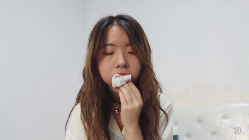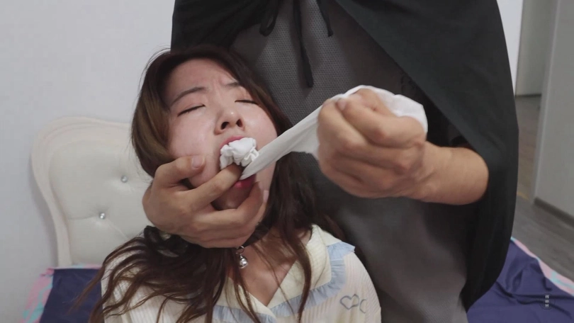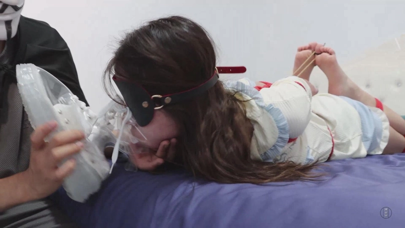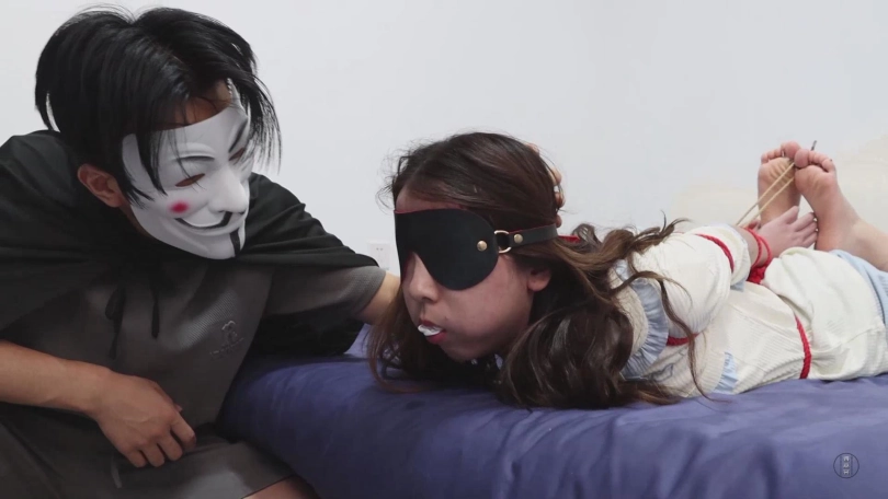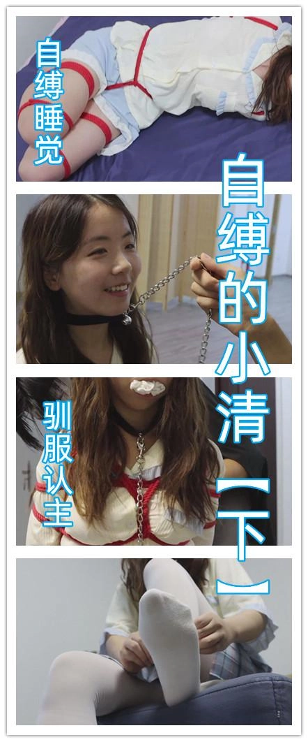【视频时长】:00:40:28 【文件大小】:2028MB 看点:可爱睡衣套装(清自己的选择,蓬松可爱)+中筒白丝袜堵嘴(上部里穿着它进行的游戏)+留到最后的原味冰冰袜自行堵嘴(原本也是用来堵嘴的,除了定拍时一直穿着以外,还提前穿了两天,非常够味)+自缚睡觉被入室(没准这是小清梦寐以求的情况呢)+直臂驷马绑脚趾(这个绑法可是相当难受的,但主动权自然早就不在小清手里了)+强制闻袜子闻鞋(气味系折磨赛高)+驯服后小清的伪装拘束(满心期待的被绑好,亲手用臭袜子堵上嘴之后被带出去玩) 这是《自缚的小清》系列的下集,也是我手里最后一部清清的作品了,因为多种原因,下一次与清清合作就要等明年了,我也是十分不舍,加工加点的拍出了这部作品,因为这部作品拍摄了将近十个小时,连续的高强度拍摄也让清清非常疲惫,在此也是感谢清清,辛苦了。 综合各方面因素,需要考虑到清清会疲惫的因素,观感可能没有上部那么积极,但是依旧非常卖力,同时因为加入了老哥入室强迫的元素,所以这种疲劳感也不是特别明显,没有这方面顾虑的话,实话实说依旧是非常棒的作品,可以放心欣赏。 进入正题:却说进行了两轮十分折腾的自缚游戏,小清的兴致依旧不减,换好可爱的睡衣后面对着铺满床铺的绳子和镣铐,小清决定玩一次自缚睡觉。 所谓自缚睡觉则是小清对于自缚游戏的延续,因为今天天色已晚,不得不休息但却不想这么轻易的放过自己而产生的绝妙点子。 小清将脚上已经被汗液浸透的白色中筒袜脱下来,将这双中筒袜尽数塞进自己的嘴里,品尝自己的脚汗和气味并且时刻让嘴里充斥着自己的袜子便是最能让她兴奋的行为,当然,那双要留到最后享用的白色冰冰袜自然也是要穿着的,穿好后小清将自己的双腿紧紧的绑在一起,让它们在睡觉时无法分开。 小清:果然特意准备的原味袜子味道很大,用来堵嘴真是太刺激了,嘴里又咸又涩,还有一股汗酸味儿,不知道留到最后的冰冰袜味道怎么样?虽然一会儿要睡觉了,但还是穿着它继续捂出汗吧。 绑好双腿后小清取来耳塞和眼罩给自己装备上,虽然常规状态下小清也会为了追求高质量睡眠而戴上耳塞和眼罩,然而现在这种被拘束的情况下,这些道具便更像是为了剥夺她的感官而存在的,确保自己看不到也听不到后,小清满意的趴在床上,将手铐铐在自己的手腕上,完成了此次自缚。 小清:现在我就连睡觉都被绑着了,嘴里还塞着自己穿出汗的臭袜子,为了保证睡眠质量,我还用了眼罩和耳塞,虽然现在看上去更像是剥夺我感官的刑具就是了,那么先晚安吧,早上起来再进行这场游戏的收尾阶段~ 小清此刻嘴里被原味中筒白袜塞得满满的,无法说话,眼睛也被眼罩遮住,耳朵被耳塞塞住听不到声音,身体也是被她自己拘束起来,这种状态让小清非常享受,便毫无防备的进入了梦乡,然而——在进行自缚之前,一定要检查一下家里真的只有自己才行哦。 带着面具的神秘人早已潜伏在门外,等小清睡熟后便悄悄进入小清的卧室,抚摸小清的脸颊,不知情况的小清被突如其来的触摸惊醒,疯狂的挣扎想要摸到床上的手铐钥匙,然而神秘人先行一步将钥匙拿走,小清此刻肯定非常后悔,为什么自己要把自己绑的这么紧,堵嘴的袜子塞得如此的满,让她无法呼救。 神秘人将她的耳塞和眼罩取下,然后对她说:你别激动,我知道你在玩自缚游戏,你只要乖乖听我说话,我是不会伤害你的。 在小清点头表示配合后,神秘人将小清嘴里的白色中筒袜缓缓取出来,并调侃了一句。 神秘人:哦,原来你喜欢用自己的臭袜子堵嘴啊。 小清:这不关你的事!你是什么人?你想把我怎么样? 神秘人:别紧张,我不谋财害命,我只是偶然发现了你喜欢自缚的秘密。如果我说的没错的话,你缺少一个真正意义上对你下命令的主人吧? 小清:你,你在说什么?什么主人?我根本听不懂。 这句话正好戳中了小清的命脉,她一直苦于没有一个真正的主人能够命令她,而眼前这个男人是否能够胜任自己的主人呢?小清陷入了疯狂的幻想中。 神秘人:听不懂?没关系啊,那你解释一下这是什么啊? 神秘人拿给她看的正是之前她将被尿湿的内裤塞进嘴里的自拍照! 小清:你,你怎么会有这种照片? 神秘人:我很早就藏在角落里了,把你的游戏完整的看了一遍。如果不想这些图片传播出去的话,你知道该怎么做吧? 小清:……知道了,主人。 神秘人给小清解开手铐,说道:不错,够聪明。那我的第一条命令就是,告诉我为什么要把脚上穿着的那双白袜留到最后。 小清:是,这双袜子我上学期间一直穿着,还上了两次体育课,所以为了出更多汗,我从开始自缚游戏就一直穿着它,现在正是气味最重的时候。 神秘人:哦,那气味最重的时候要拿来做什么? 小清:用来……塞进自己嘴里。 神秘人:很好,那就当着我的面把这双你准备已久的原味白袜塞进自己嘴里吧,记住要塞满。 小清:……好的,主人。 小清将这双原味冰冰袜脱下来,缓缓塞进嘴里,塞好后还用手指压实,然后还呜呜的叫两声证明已经堵好了。神秘人命令道:不准吐出来,跪在床边,把手放在背后。 小清呜呜回应着,跪在床边背对神秘人,将双手背后呈直臂的状态放好,神秘人将绳索搭在小清的身上。而后,小清十分顺从的被绑成了直臂驷马的样式,不仅嘴里塞着自己穿过味道最大的白色冰冰袜,而且眼睛也被眼罩蒙住了,脚趾和手指也被绑紧,这是自缚不可能做到的紧致程度,小清享受般