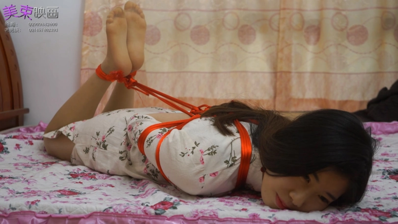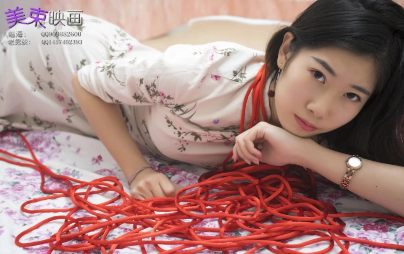 古朴旗袍与红绳更搭配,模特丝袜脚还不错,绑成驷马挠脚底很好玩。