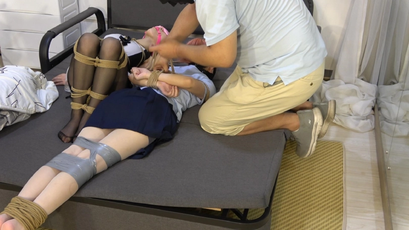 【视频时长】:00:38:30 【文件大小】:1206MB 珊珊下班回家,看见床上室友小狐狸盖着被子已经睡了。于是坐到床上,脱下自己穿的黑色高跟鞋,放在小狐狸鞋的旁边,也打算休息了,却发现小狐狸对她相视一笑。珊珊一掀开被子发现小狐狸全身被捆绑,上身绑了精美的龟甲缚,双手绑在背后,一双美腿被许多绳子紧紧绑在一起。原来是小狐狸为了给珊珊庆祝生日而把自己绑成了一件礼物。兴奋的珊珊玩弄了小狐狸一番,拿出道具将自己也绑了起来,准备和小狐狸享受一个甜蜜的夜晚。然而一位不速之客却闯入房间。被绑的珊珊和小狐狸无法反抗,只能任由他加固二人身上的捆绑,嘴巴带上双人口塞,脸对着脸绑在一起...... ![]() ![]() ![]() ![]() ![]() ![]() ![]() ![]() ![]() ![]()