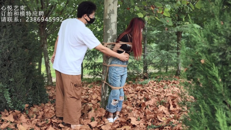 脚上戴着仅有10cm的镣铐在野外行走,最后又被我绑在树上挠痒痒。以前也就在绳艺小说里面经常看到的情节,中间来的几波人增加了几波刺激。