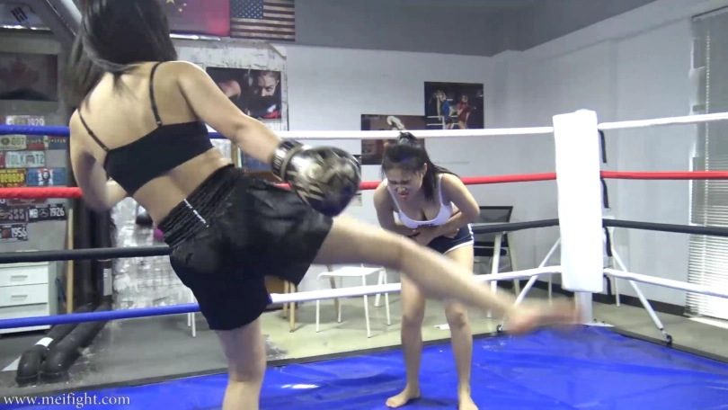 Xinxifightwithboxingstyle(sheworegloves)whileAganfightwithoutgloves.Inthefight,AganwasthemoreskilledfightersoshecandodgeandhitXinximore.Butit wasnotaneasyfightforher.