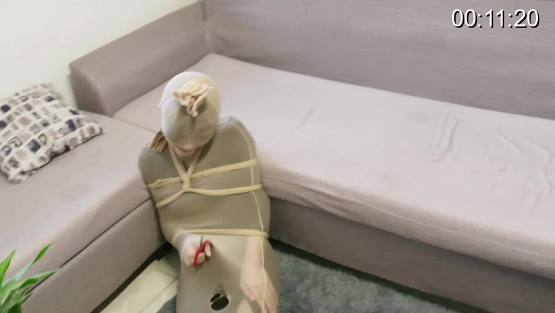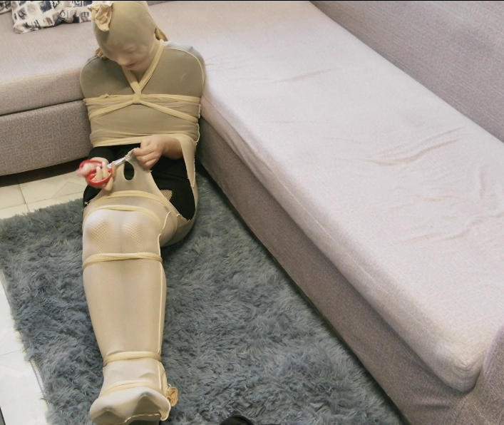 海星下班回到家中,不知道哪里掉下一条丝袜,然后她被丝袜包裹住,怎么都挣脱不开,并被绑了手脚勒了嘴巴,最后又从天而降一把剪刀,废了九牛二虎之力解开后,海星气喘吁吁瘫在沙发上,这时候又掉下来一条丝袜,海星不禁喊了一句:“还来?”