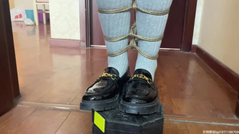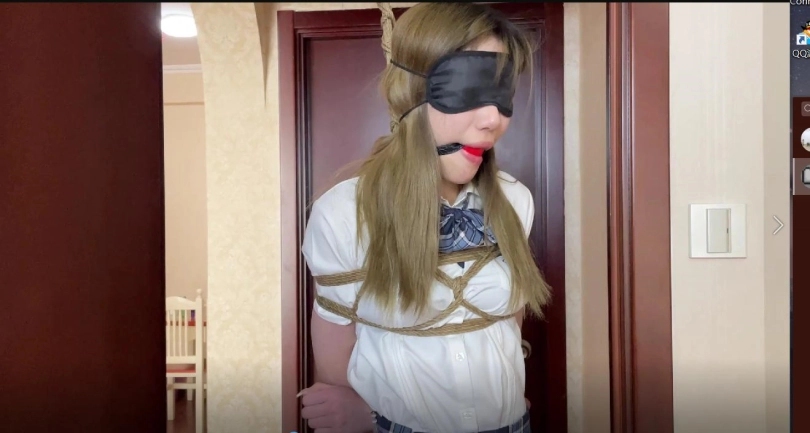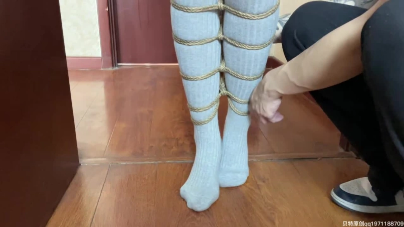 第一段是JK制服+口球眼罩+灰色棉袜+直立吊缚+踮脚尖+tk。