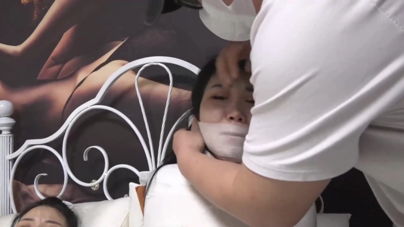 2位美女互相陷害,木乃伊绷带上涂抹胶水导致2人被永久做成了只能蠕动扭曲的人茧,而无法做任何反抗的她们唯一能活动的小嘴也被封死。