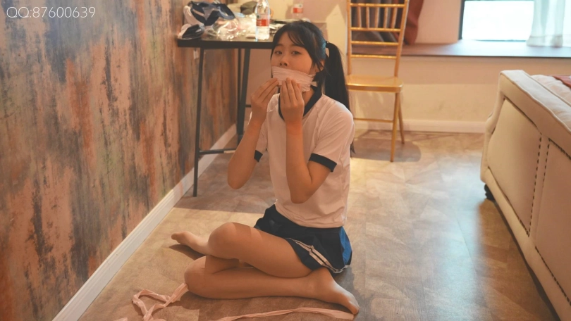 妹纸来体验一把胶带,不管是拘束还是封嘴效果都很好,还可以配合鼻夹玩玩[X_X]。