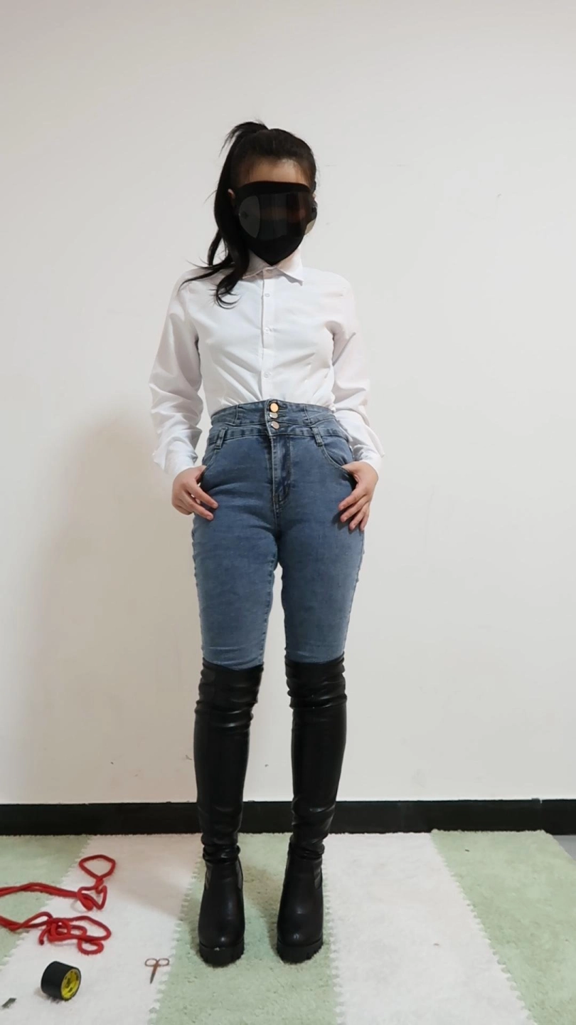 假乳胶塞住下面自缚,自缚过程全过程展示,自缚好后穿上平时穿的工作服去上班。