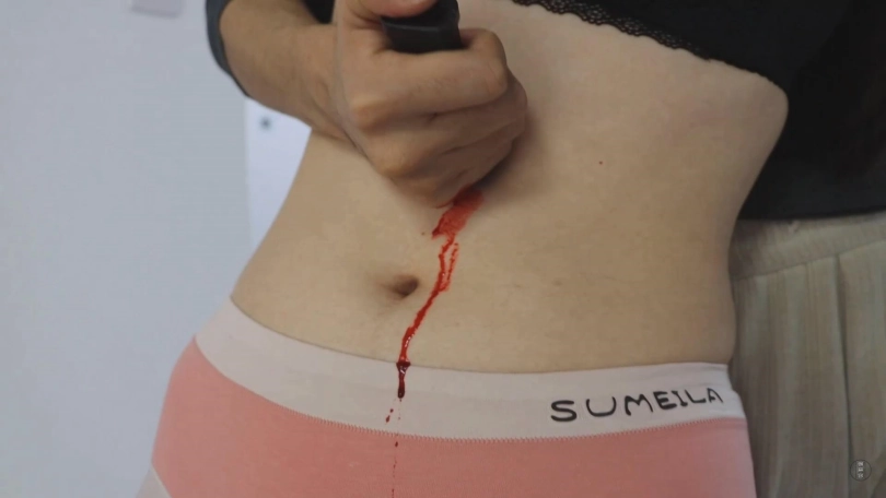 内衣版。这天小七接到暗杀律师星宇的命令,在楼下看到星宇进入楼梯间就陷入了幻想:细绳子勒住星宇的脖子。回到现实,他从厨房翻入了星宇的客厅去寻找证据材料,不料被星宇发现,于是一不做二不休弄晕星宇之后脱下她的外衣仅剩内衣裤。星宇向外跑,却被小七追上遇害。