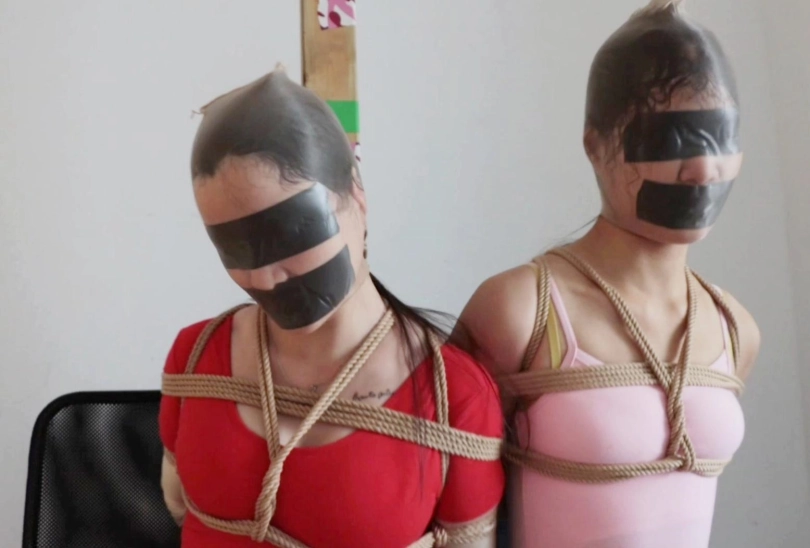 将个身穿舞蹈服的女生遭遇绑架,歹徒先是将两人双手反绑,双腿并拢捆绑,眼睛用黑布蒙住,嘴巴用透明胶带封住。之后考虑到作案不便,于是将两人打晕后转移。为了防止两人自救,歹徒用粘性超强的黑色胶布贴住了她们的眼睛和嘴巴,然后用丝袜套住头,确保她们感官被剥夺。时间到了以后,歹徒用黑色丝袜将两人勒s.