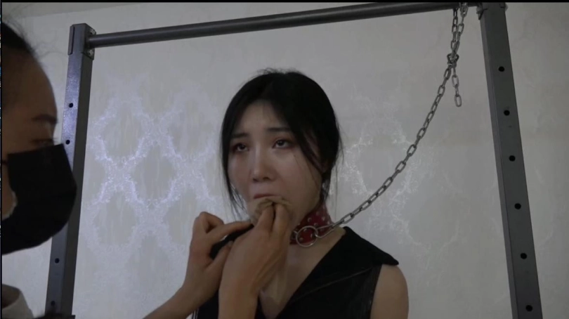 吴晗小姐姐手铐放置 依然穿了12cm的高跟鞋 堵嘴方面丝袜全部塞进去