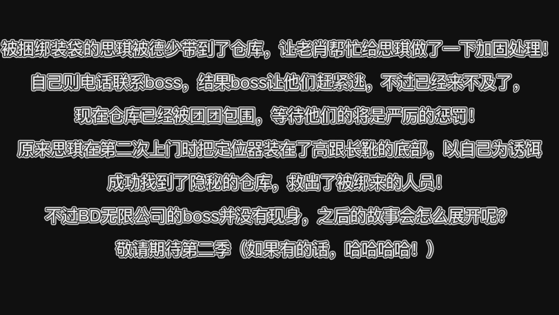 【视频时长】:00:25:24 【文件大小】:902MB 德少和老肖点完“货物”各自回据点休息, 不过德少这边却迎来了一位不素之客,上门调查的探员蒋思琪 原来之前侦探杨君茹不仅让同伴吴睿诗做接应,还把自己调查的情况 共享给了以前特务支援科的后辈蒋思琪,几天没有杨君茹的消息 蒋思琪决定根据线索上门询问... 评论区有小伙伴已经猜出来是《贩卖》这部经典绳圈小说了! 哈哈哈哈,站在大佬的肩膀上进行了粗浅的改编,这是最后一集啦 加入了一位真探员角色,让结局好了起来,不过也埋下伏笔(实际挖下大坑) 为第二季的开拍做铺垫!(第二季??? 君兮饰演探员宋倩 新模特君兮,大长腿大高个挣扎给力,衣服鞋子都是新买的,演技方面有待提高,不过整体不错,值得一看!!! ![]() ![]() ![]() ![]() ![]() ![]() ![]() ![]() ![]() ![]() ![]() ![]() ![]() ![]() ![]() ![]() ![]() ![]() ![]() ![]() ![]() ![]() ![]() ![]()