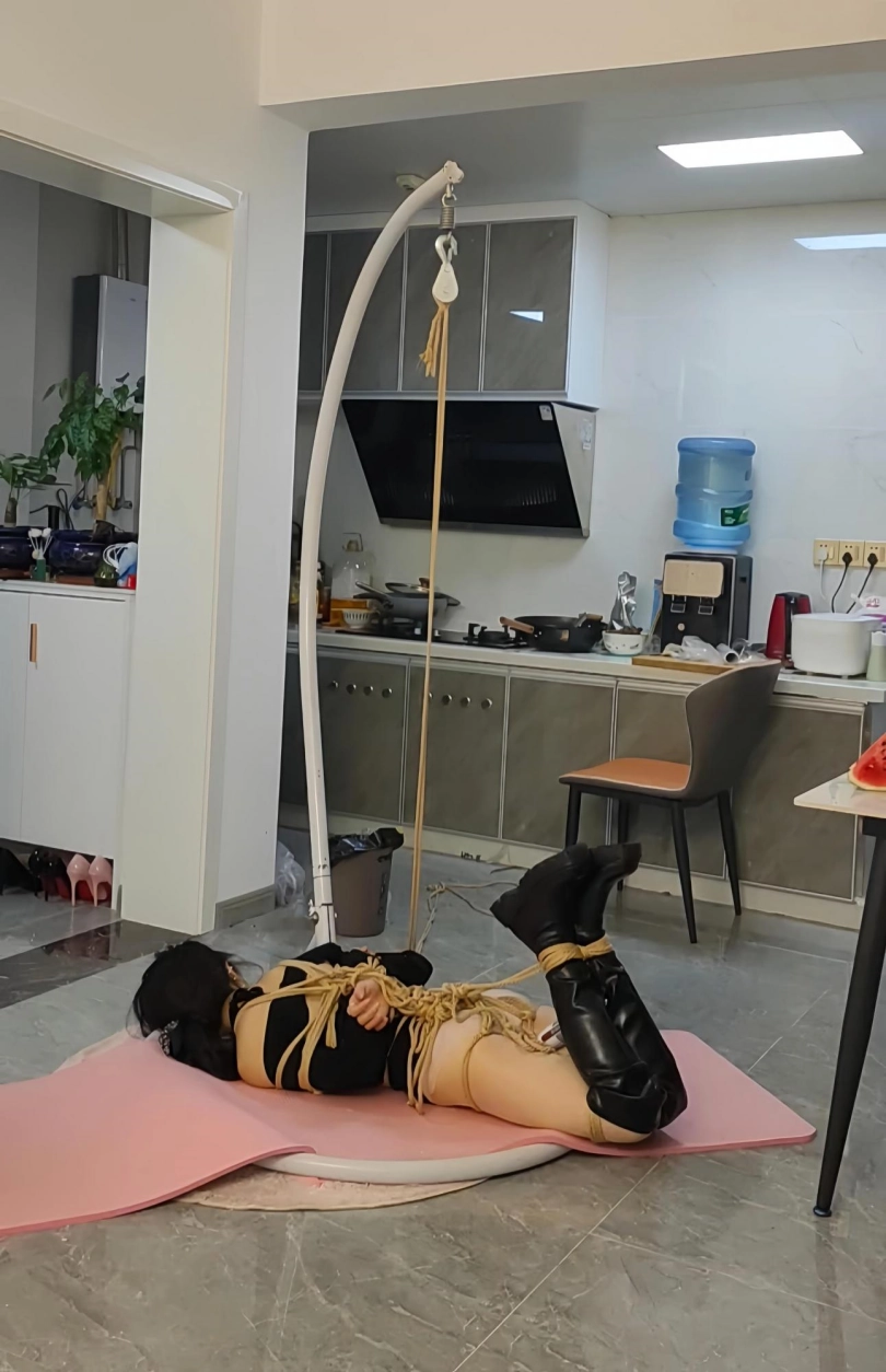 这次小m穿上这个长靴配上肉丝,腿显得特别长,吊起来也不停的在空中扭动,至于为什么扭动,你们猜!不过幸亏她体重轻,才没有那么难受。于是就先吊个半个小时再说吧。。大叔非要把她折磨到痛苦才罢休。。。