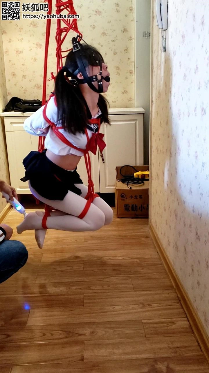 前一天晚上,晴子非要试试绑我,给我弄了个日式驷马,头戴马具和脚连上,折磨死了。今天我为了报复她,直接日式紧缚加马具口球固定,最后把jio也吊起来固定死,怎么挣扎都不可能挣脱,拿着鞭子使劲抽,好好出了一口恶气。(吊的时候用的腹肌轮,我发现这玩意比吊缚环还好用。。。)