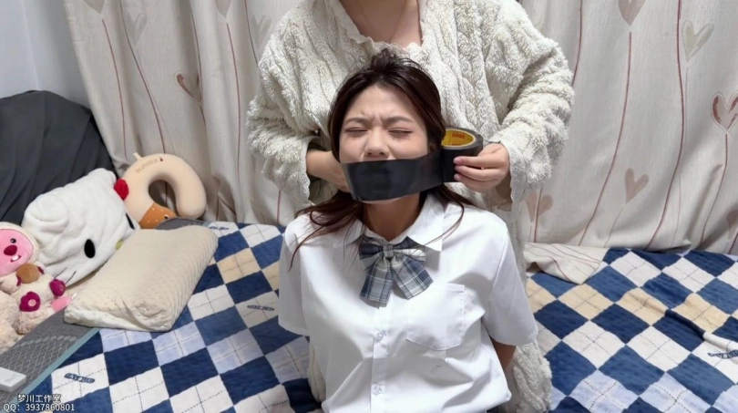 灵儿穿好利来裙子,被凶手双手反绑坐在凳子上腿放床上,逼问密码灵儿不说凶手用保鲜膜缠住头部 凶手再次捆绑灵儿 逼问密码,但是凶手脑凶成怒用胶带紧密封住灵儿口鼻 导致灵儿不能呼吸,灵儿拼命挣扎 最后被活活闷晕 凶手把死者放在旅行箱里后离开工作室