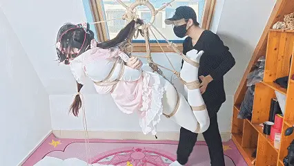 临结束之时再次被绑成驷马放置在地面,侧身翻过玩弄……