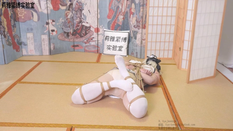 紧缚实验/cosplay/紧缚/蛋蛋/日式/并腿/折腿/驷马/直臂/白丝蒙眼胶带封嘴的情况下,塞入蛋蛋紧缚挣扎