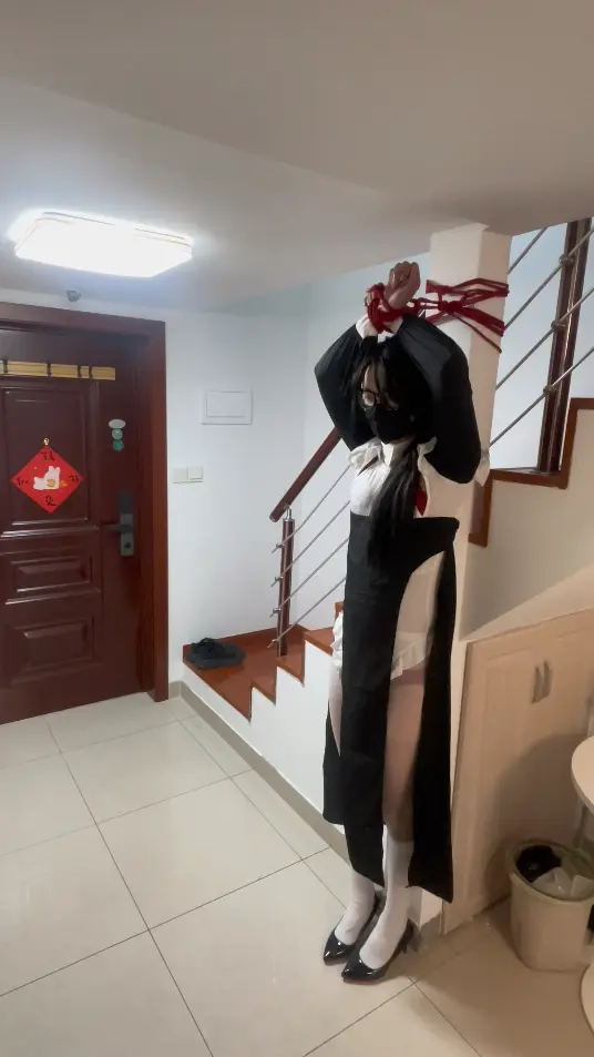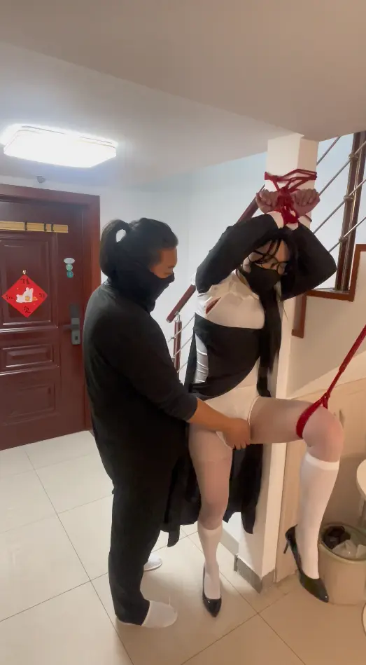 白丝小腿袜的小男娘无助的被捆绑在柱子上,双手举过头顶被捆着,毫无保留的露出无法反抗的样子给缚手