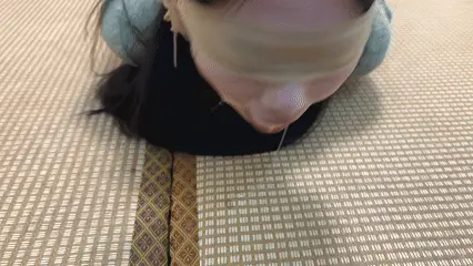 具体要求:丝袜蒙眼(肉丝),口球堵嘴(有流口水),项圈牵引。