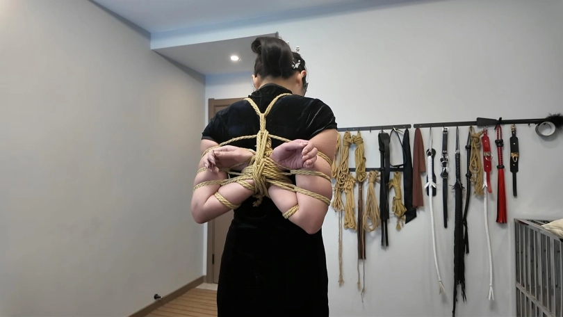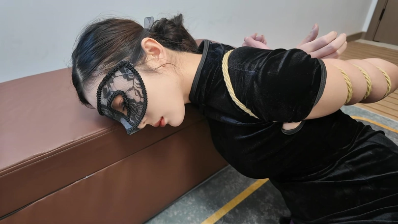 偏爱旗袍,于是根据客户要求,带眼罩,三套旗袍,三种绑法,佳佳换上旗袍,更显身材,戴上眼罩更有一番神秘感,日式绑好,蒙上眼睛,跪在房间等候客户到来体验捆绑,客户进到房间,第一感受非常棒,开始了今天的旗袍捆绑之旅