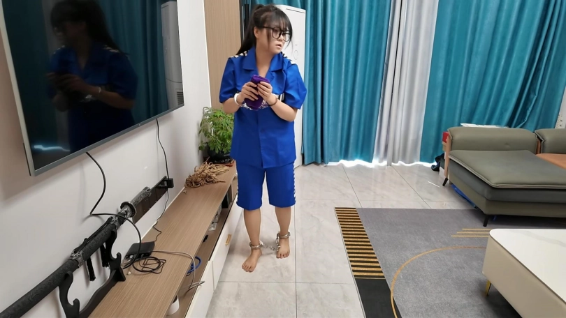 小遥被囚禁在笼子里,放出来带上脚镣打扫卫生,主人回家,小遥求主人挠脚心,然后就被被绑到老虎凳上面挠脚心,各种工具尝试一遍,最后数据线狠狠的赏了几下,疼的小遥哇哇大叫