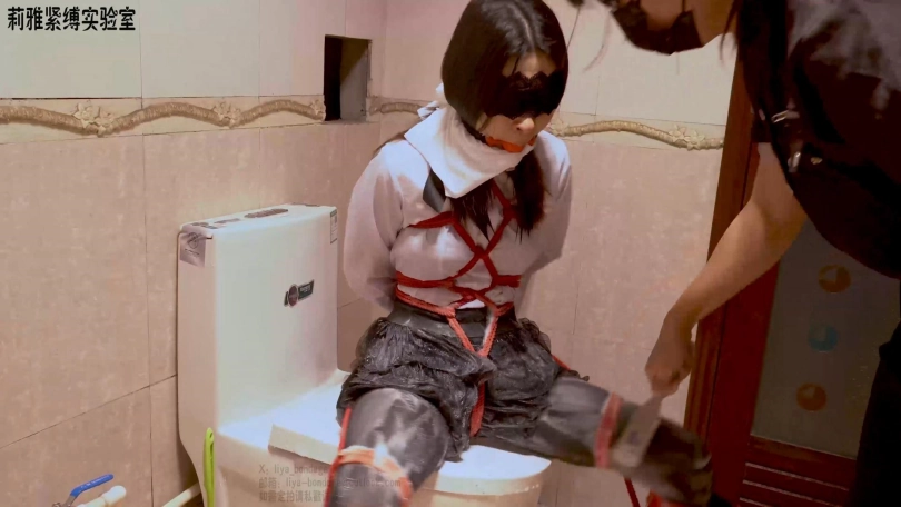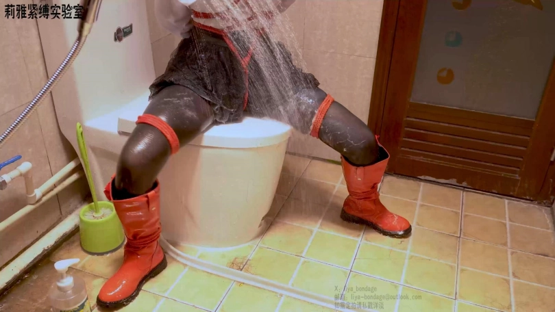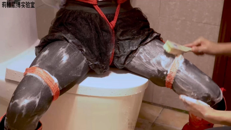舔舐感觉后歹徒将奶酪带到浴室中,绑在坐便器上,用袜子塞住嘴巴又戴上口球,用喷头将奶酪全身冲洗感觉,又打上大量的浴液用刷子将奶酪的下身刷出很多泡沫,之后冲洗干净,重新打上浴液,直到歹徒觉得弄的足够感觉才停下