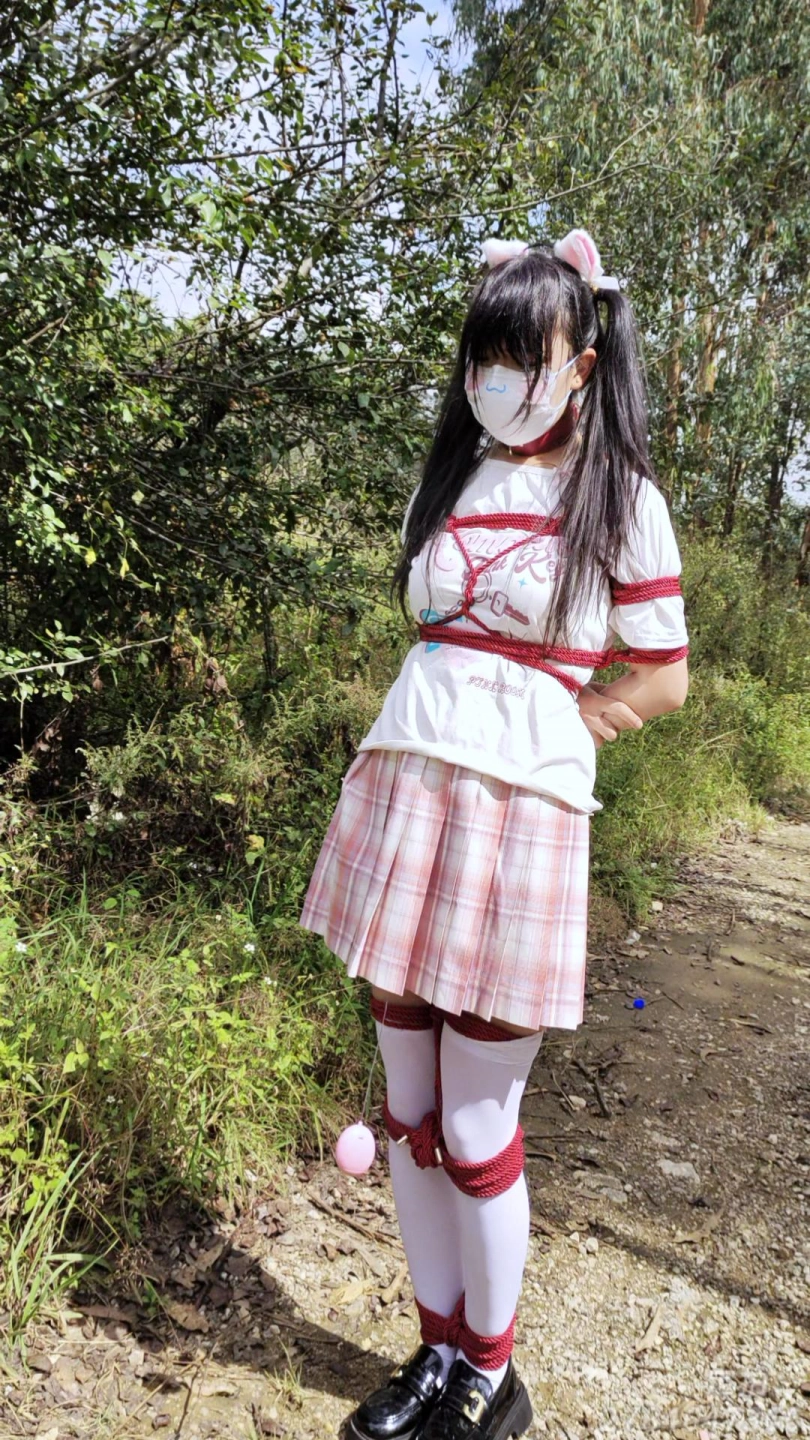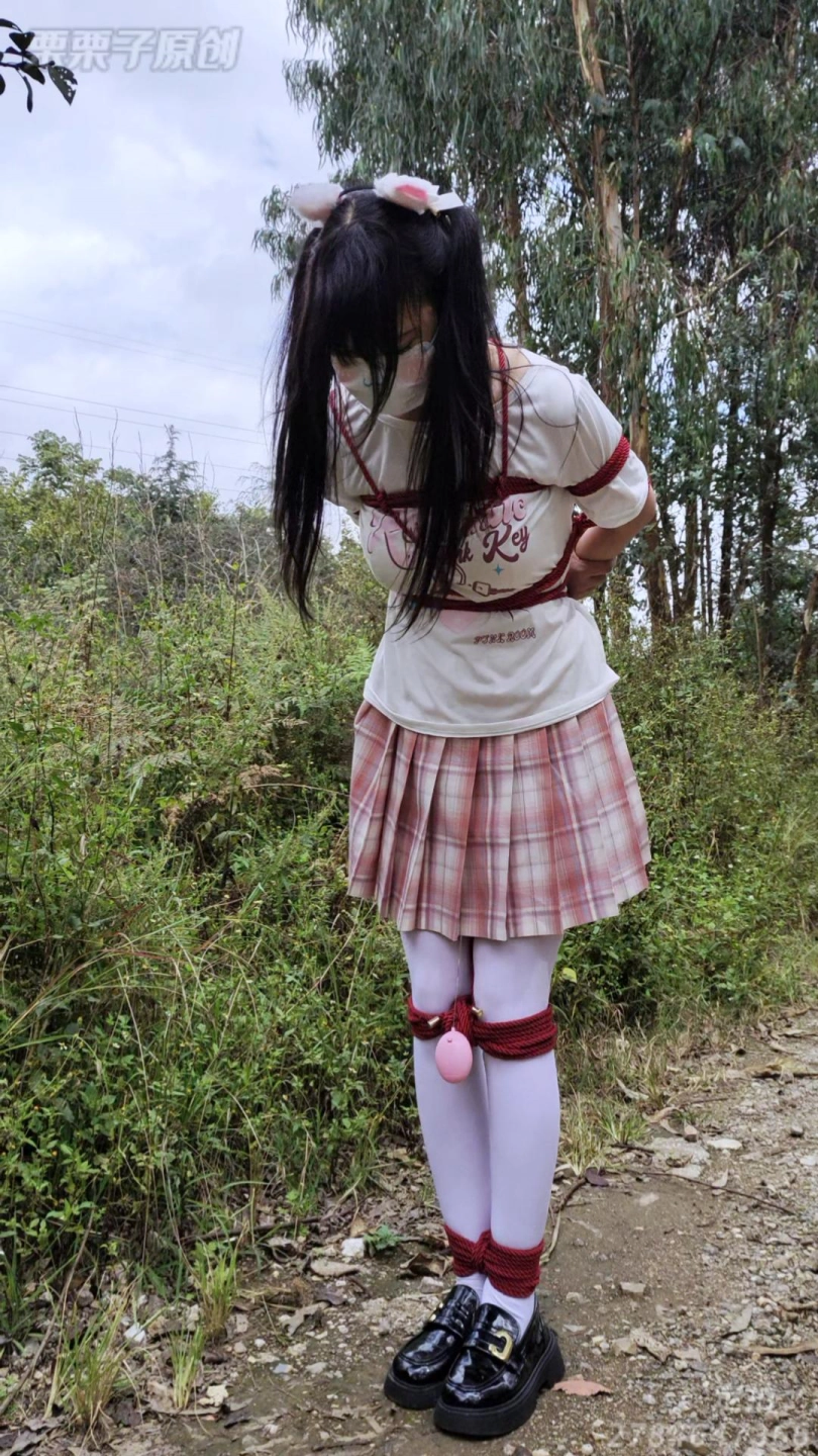 被控制的小M,被捆上双手和双腿,塞上快乐蛋带到小树林,让她在被快乐蛋折磨到腿软,随时都会被发现的风险下,让小M不停跳跳跳,让她求饶……