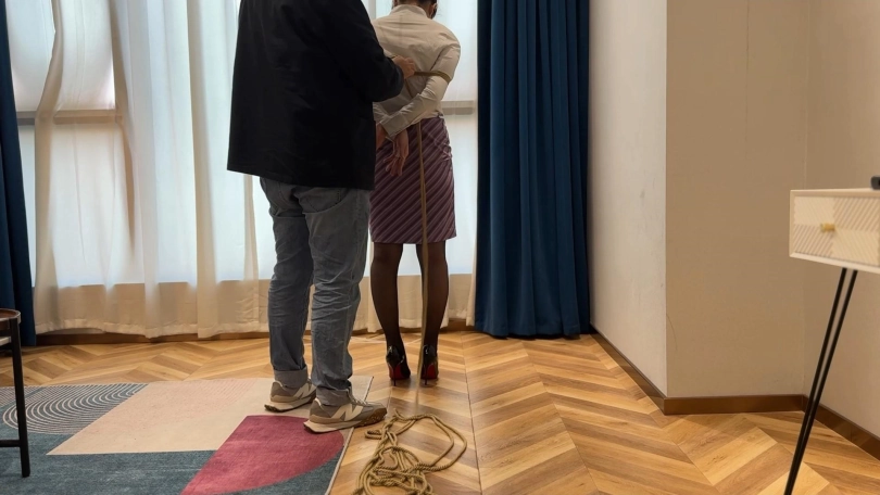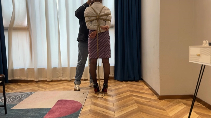 试完扎带,洋洋说那个叫丢雷的大神好像绳子绑的也还不错,叫我试试他的绑法,于是我只好认真学习了大神的作品,结果眼镜会了手没会,事实证明洋总高估了自己,最终坚持不住了,视频最后留了一个小彩蛋,女模特候场