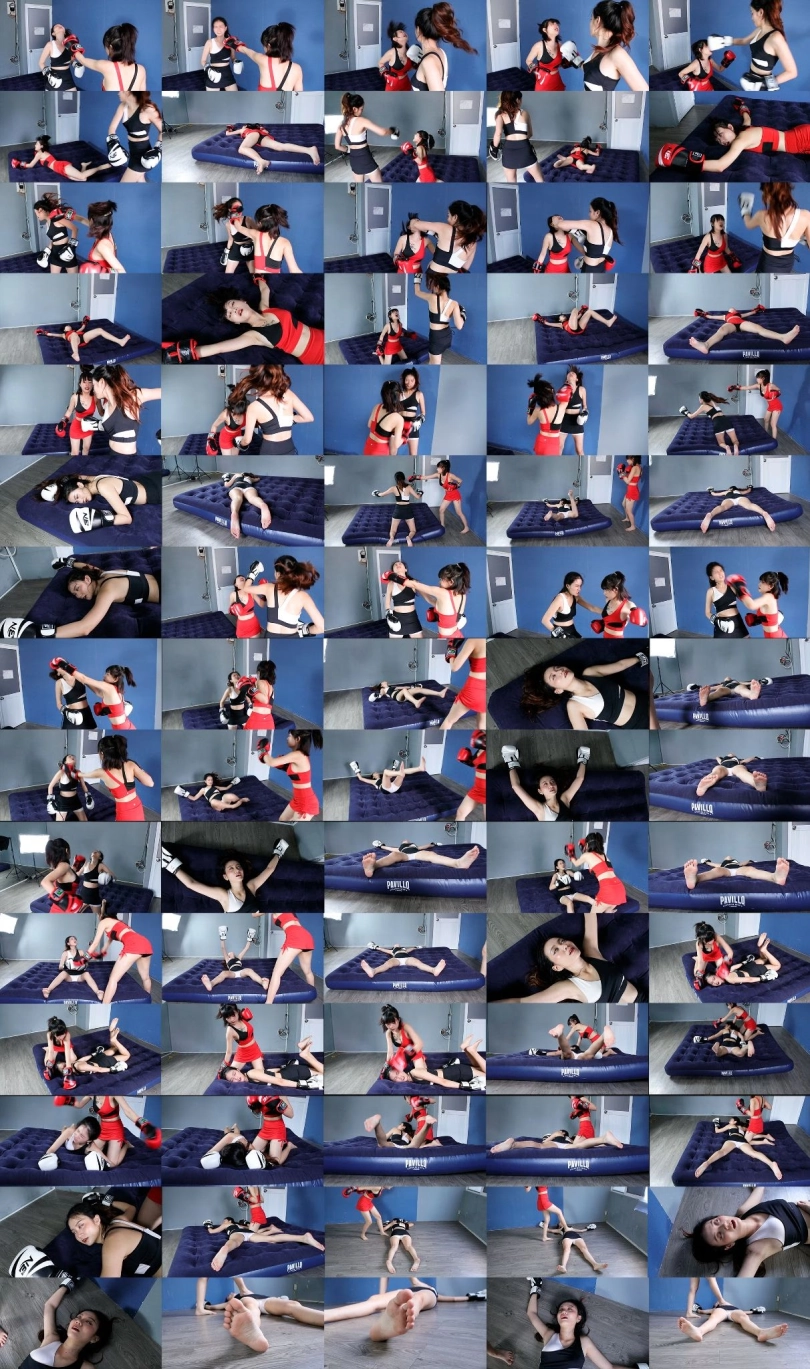 Emily (Red) vs Nana (White) fights each other in a boxing match. Whoever scores 3 knockouts first will win. Nana gets the first 2 KOs but Emily makes a comeback. Nana after getting 2 devastating KOs from Emily has lost a lot of stamina and she is easily beaten by Emily. Emily wins but she is not letting Nana get away that easily. Emily starts beating on the poor Nana`s lifeless body and finishes her with a final neck snaps that sends her to heaven! This video has more than 5 KOs + slow motion KOs + Eye Rollings + Feet Shot. ![]() ![]()
