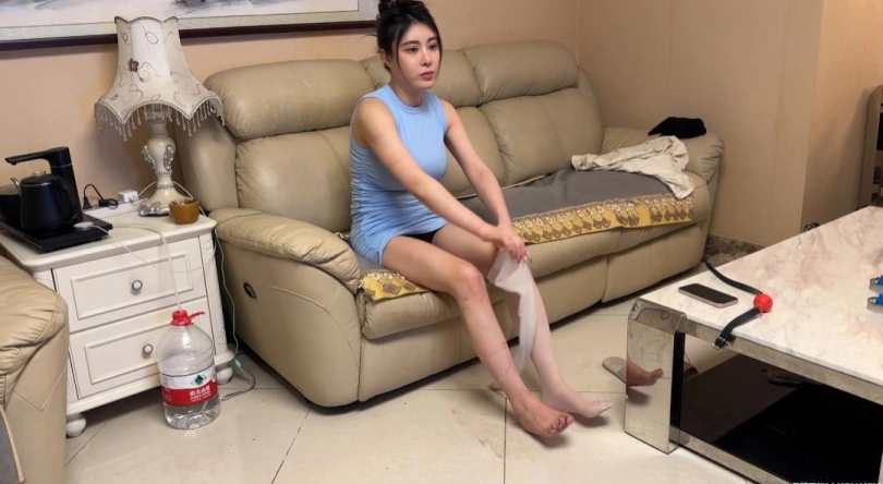 安慈蓝色包臀裙,白丝,沙发上放置挣扎,口球,流口水,微TK
