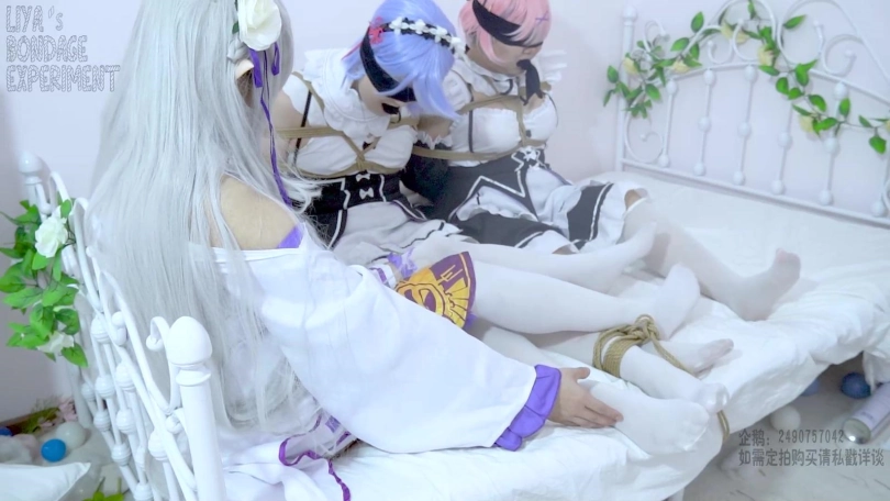 蕾姆和拉姆被艾米莉亚捆绑在一起,并且蒙住眼睛和堵嘴被TK。TK了一段时间后艾米莉亚说要TK他们5分钟,两个谁可以忍住不笑就先放了谁