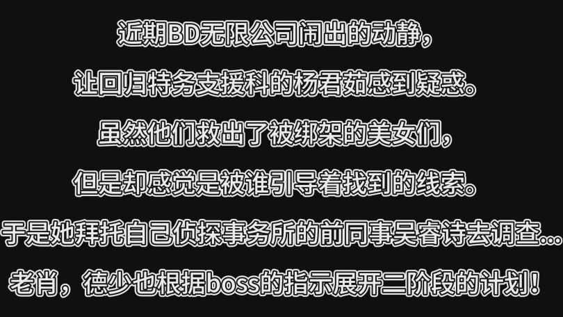 近期BD无限公司闹出的动静,让回归特务支援科的杨君茹感到疑惑。