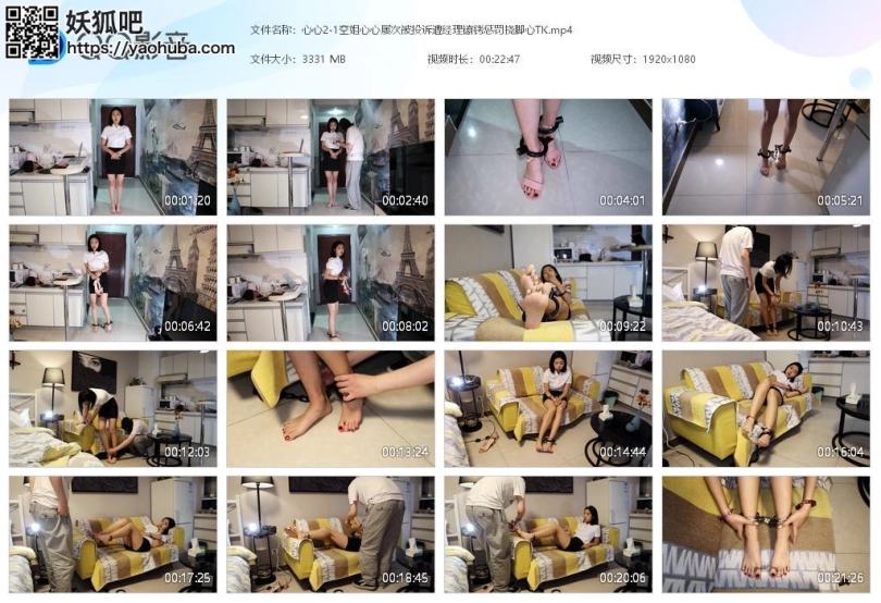 【视频时长】:00:22:47 【文件大小】:3331M 关键词:空姐心心 被投诉 遭经理镣铐惩罚 挠脚心TK 心心是个很可爱的妹子喔,02年的学生,空乘专业,175高,气场十足!!! 这是第二次拍摄了,不得不说经历了初次的体验,妹子感觉还不错,还挺刺激的,于是这次加大了挠脚心挠痒痒的比例,还在脚底写字猜字。最值得一提的是,发现了她的敏感部位哈哈哈,用小牙刷挠她大腿内侧,痒得不行不说,竟然还湿了,虽然她嘴上不承认,但是味道都有了哈哈哈!!!还有还有,拍摄了一组圣诞装的xiezhen视频,就让她脱去内衣直接穿的圣诞装,后面再换衣服也没再穿内衣,于是衬衣裙子里面就真空了哈哈哈!!! 空姐心心被经历叫到办公室,刚进门就被一顿批评,然后戴上镣铐惩罚。妹子觉得高跟鞋不舒服,就脱下来赤脚走,结果遭致经历更严厉惩罚,挠脚心,锁在沙发上动弹不得。 ![]() ![]() ![]() ![]() ![]() ![]() ![]() ![]() ![]() ![]() ![]() ![]() ![]() ![]() ![]() ![]() ![]() ![]() ![]() ![]()