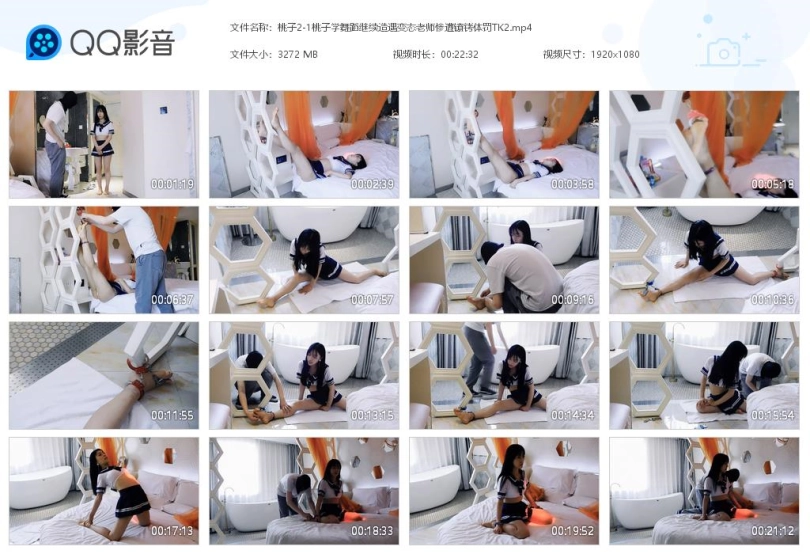 【视频时长】:00:22:31 【文件大小】:3272M 关键词:学生桃子 学舞蹈 继续造遇 变态老师 惨遭 镣铐 体罚 TK 2 手铐 脚铐 脚趾铐 水手服 舞蹈鞋 棉袜 妹子第二天继续来上舞蹈课,这次穿了舞蹈鞋,一进门就被老师认出来是昨天很不用心那位学生。老师说这节课临时改了,不穿舞蹈鞋,让妹子在门口把舞蹈鞋脱掉光脚上课妹子开始紧张,想蒙混过关不想擦掉趾甲油的事要曝光了,妹子害怕地脱掉鞋袜站在地上。老师指着脚趾问为什么不擦掉,妹子又不敢说,只能挨罚。于是老师决定进行惩罚,让妹子躺在床上,脚趾脚腕铐上,吊起来。妹子在吊脚趾的过程中非常难受,一直和老师重复再也不敢了。老师用小皮鞭打脚几下,然后解开了脚铐、脚趾,并开始了上课,首先结练习一字马。妹子的脚又绷不直,叫疼。老师感觉妹子做的很不用心,于是给她分别戴上脚趾铐和脚铐,强制一字马。妹子坚持不住,向老师求情。老师决定来点难度,挠脚心,妹子很难受,一直向老师求情。老师又用小皮鞭打脚几下。老师觉得可以了,解开脚趾铐和脚铐,下一步练习跪下腰抓脚。妹子坚持了一会就坚持不住了,向老师求情。老师让妹子改练习鸭子坐。妹子又做不好。老师又生气了,把妹子的手和脚铐起来,强制坚持。老师让妹子坚持一会。老师觉得时间差不多了,就下课了,解开所有的镣铐。让妹子穿好了舞蹈鞋,离开。 ![]() ![]() ![]() ![]() ![]() ![]() ![]() ![]() ![]() ![]() ![]() ![]() ![]() ![]() ![]() ![]()