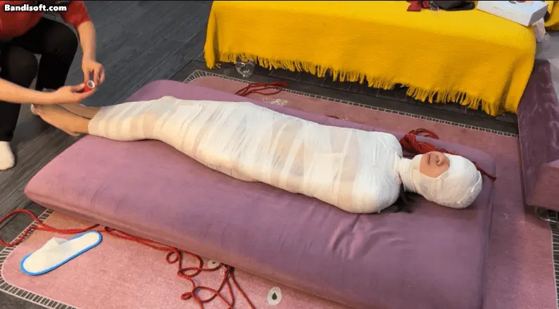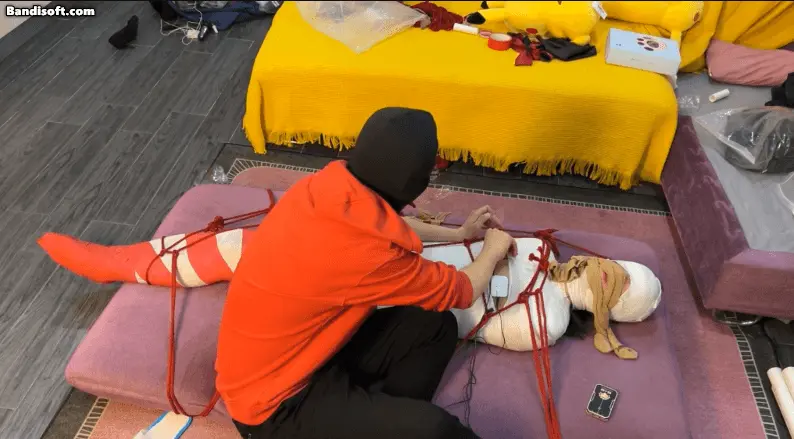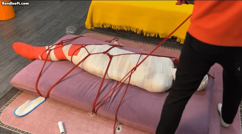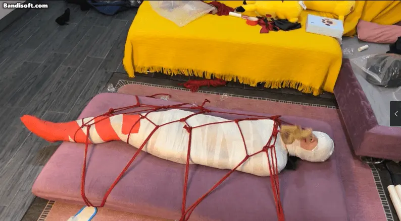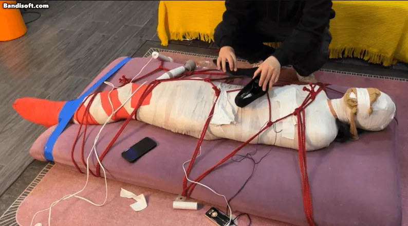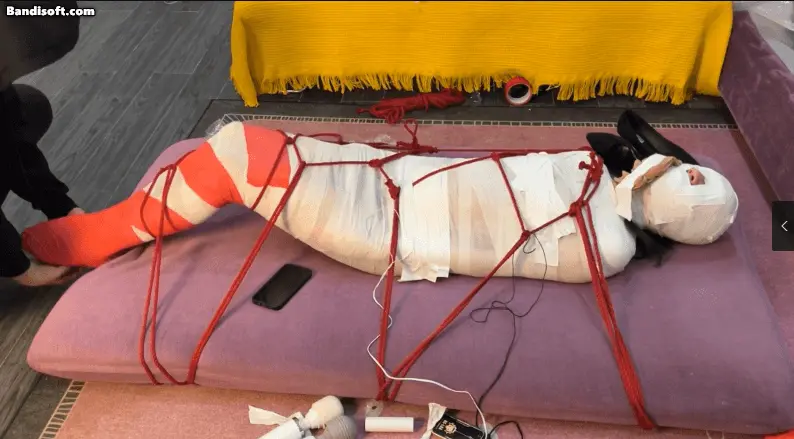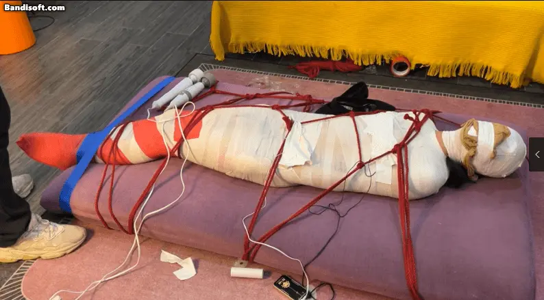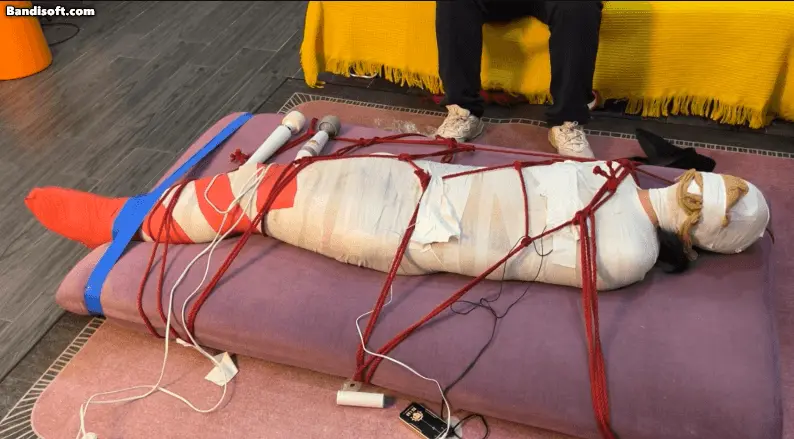 小m被绷带全身包裹 强制固定在垫子上,然后嘴里被塞入原味裤袜,被各种这么强制GC。电击贴片都安排上。