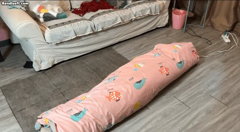 棉被虫子夕被丝袜全包然后安装好[X_X],包裹进棉被里然后又被绳索紧紧缠绕,三重拘束下 夕被棉被丝袜疯狂榨汁。