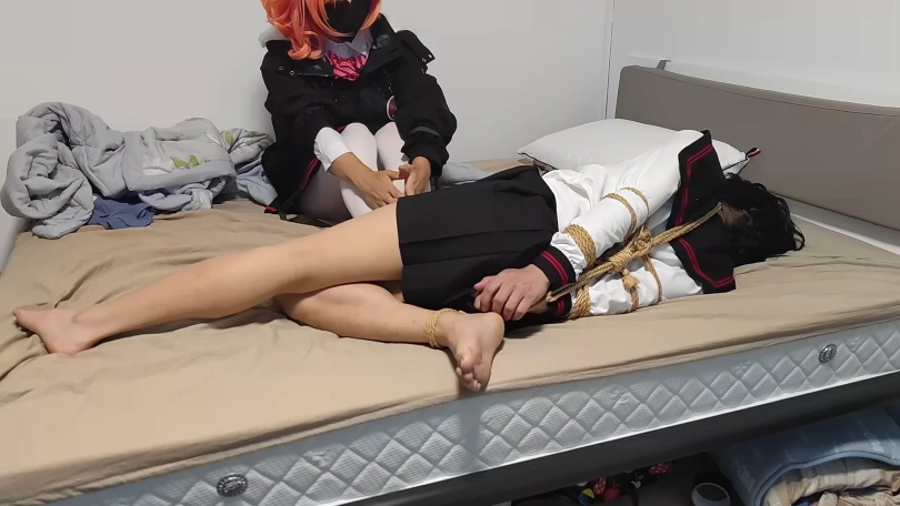 第一段前四分钟莉可绑我然后挠痒,绑法是日式和驷马