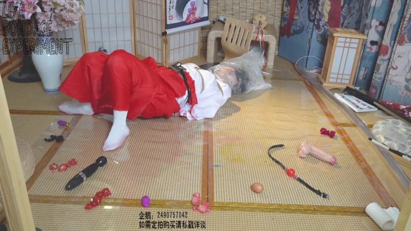 三、巫女小姐姐在蒙眼套袋的情况下,尝试用足来分辨周围的物品都是什么,准确分辨出6个即为成功、如果失败将接受非常严峻的惩罚
