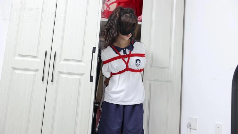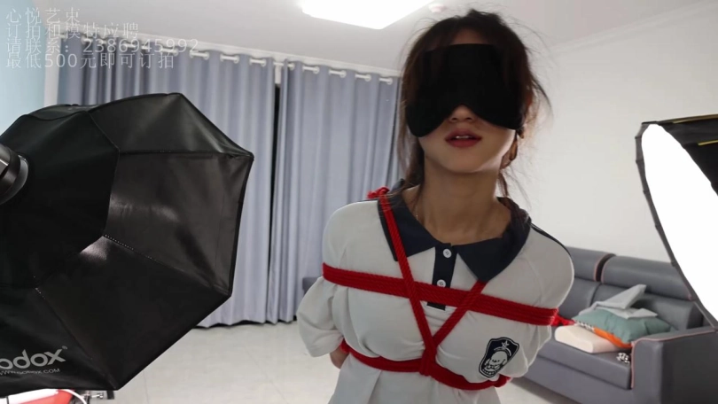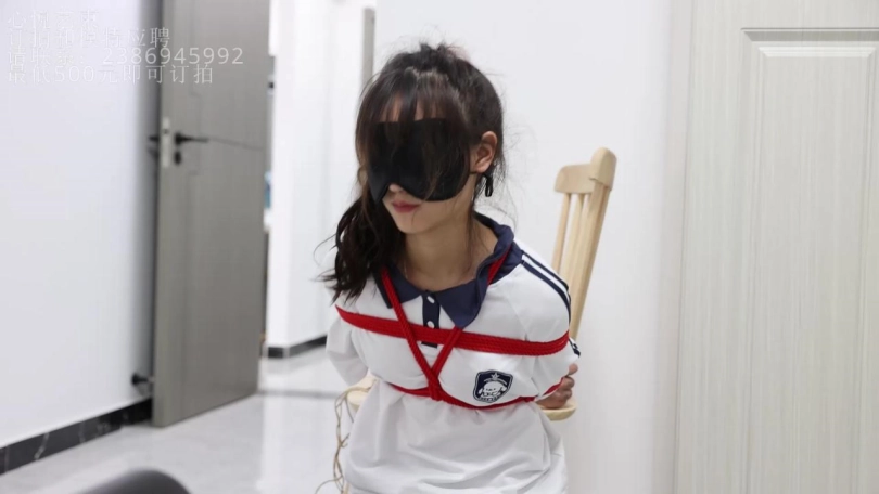 被紧缚蒙眼戴着脚镣的欢欢,在什么都看不到的状态下,用手体验一下我给她的卡片,然后要在一百多平的房间当中找到这张小卡片。是在拘束状态下哦。(PS:其实我把卡片藏身上了,她瞎找半天哈哈。)