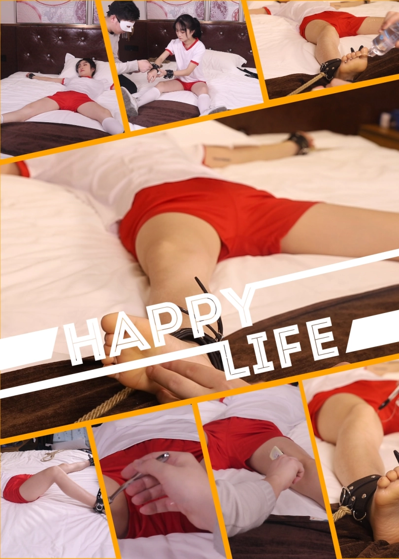 在床上紧紧的绑成大字型,再涂抹上刺激敏感型的润滑油。