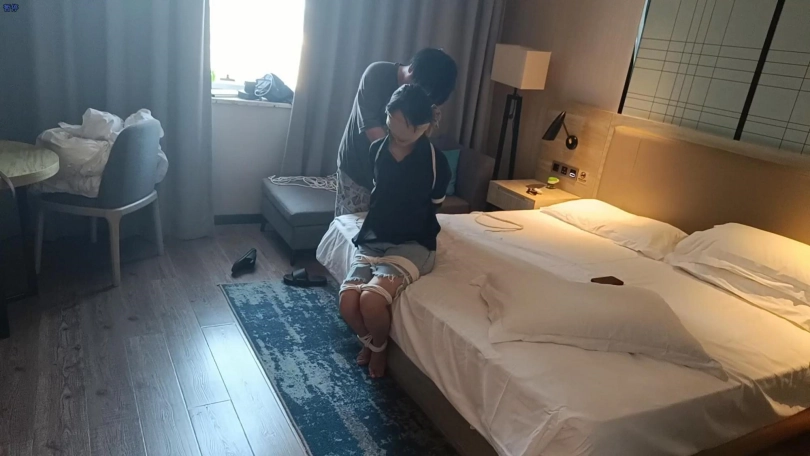 上个月和她小玩了一下,这回用的很紧的棉绳,还用四只短丝袜把她的手给包上了,只有把手机解锁才放开她,隔着两层丝袜根本没办法点手机,尝试了三次之后还是失败了,最后疯狂骂我才给她解开