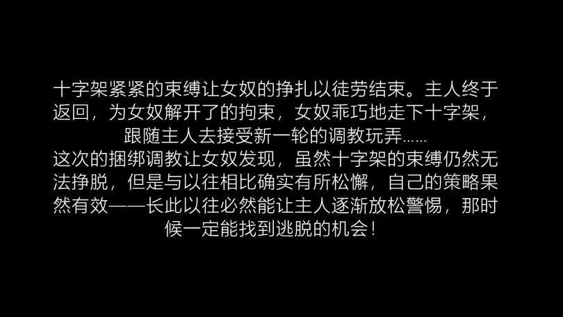 【视频时长】:00:29:44 【文件大小】:1163MB 美人(柳洋饰)被人贩组织绑架后拍卖,被新主人买下后带回家中。经过主人的严厉捆绑调教后,美人终于向主人屈服了? 又是一日,主人正坐着看书,女奴穿着性感的衣装在一旁服侍着。 女奴心里寻思:想要逃脱必须先麻痹他,让他放松对我的拘束。我可以先假意讨好,表现出屈服之态,趁他不备时找机会逃离。 于是女奴上前讨好主人,请求主人将自己捆绑起来调教。主人问女奴想被如何捆绑。女奴便故意回答:想像刚来到主人身边时那样,被紧紧的束缚在十字架上,接受主人的调教。主人听罢果然非常高兴,将女奴带到放置十字架的房间里。 女奴非常自觉地站在十字架前配合主人捆绑。主人用皮带将女奴的双手腕和双臂固定住,又用皮带系在女奴的脖颈处。过程中女奴故意做出一些挑逗的动作,扭动身体,抬起腿脚,还发出各种呻吟,引得主人心花怒放,对女奴连连称赞。 女奴假意逢迎请求主人把自己紧紧绑住,主人于是给女奴戴上了眼罩和口球,又用皮带紧缚住女奴的脚踝,双腿和身躯。主人欣赏着女奴,不时地爱抚,女奴配合地扭动娇呼。 玩弄了一会后,主人便离开了。女奴开始试着挣扎,一边呻吟着一边挣动,试图挣脱束缚,但是紧紧的束缚让挣扎只是徒劳。 主人终于返回,解开了女奴的拘束。女奴乖巧地走下十字架跟随主人离开房间。这次的捆绑调教让女奴发现,虽然这次的束缚仍然无法挣脱,但是跟以往相比确实有所松懈,自己的行为果然有效。长此以往必然会让主人逐渐放松警惕,那时候一定能找到逃脱的机会! 柳洋小姐姐这次的装扮是性感银色小裙子,搭配上肉色油亮裤袜、银色扣带高跟鞋和白色缎面长手套,真的太漂亮了。 这次精心准备了剧本,小姐姐的表演很棒,表情和仪态都非常到位,紧紧束缚之下更显诱惑。 ![]() ![]() ![]() ![]() ![]() ![]() ![]() ![]() ![]() ![]() ![]()